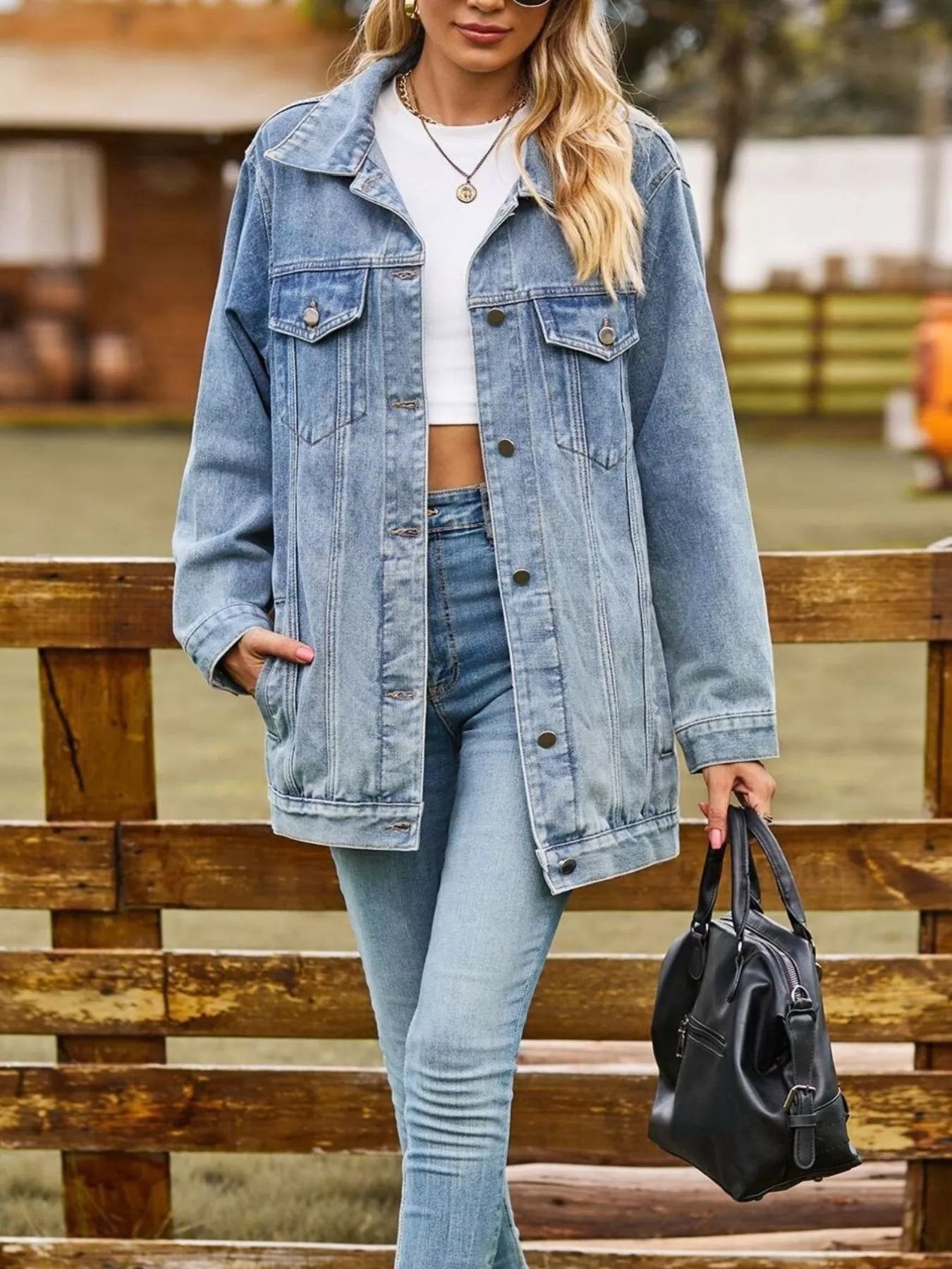 Lidi - Button Down Jeansjacke aus gewaschenem Denim